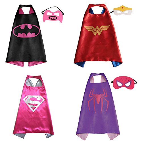 • Girl Superhero set of 4 capes & 4 masks: Spidergirl, Batgirl, Supergirl and Wonder Woman.