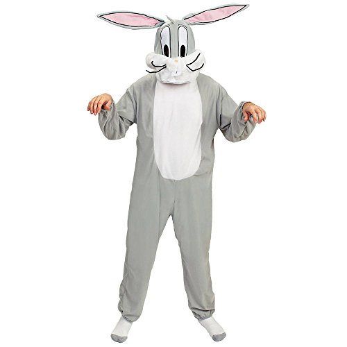 What's up, Doc? This Looney Tunes costume features Bugs Bunny. Includes: Jumpsuit and overhead mask. This is an officially licensed Looney Tunes product. Polyester. Hand Wash.