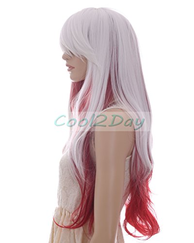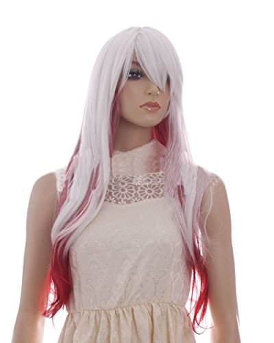 - Attractive Womens Long Mixed White/pink Synthetic Hair Cosplay Wig
