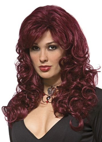 Curls of beauty with a full bang this Goddess is a wonderfully made synthetic costume wig.