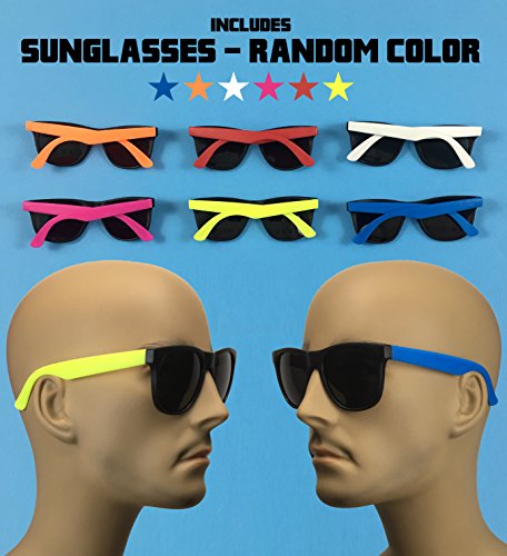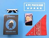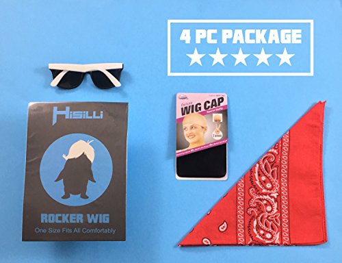 • 4 pc. Package: 1) Premium 80s Rocker Wig; 2) Red Bandana; 3) Sunglasses; & 4) Two free nylon wig liners!