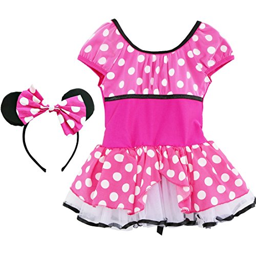 - Girls elastic polka dots dancewear paired with headband